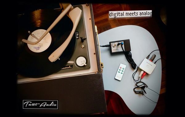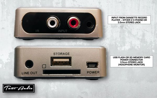 Thanks to Tutti Audio's revolutionary Bridgit Box you can now for the very first time record vinyl and old shellac 78's played on your Dansette direct to digital MP3 file format. Just add our Dansette digital recorder and files can be effortlessly recorded by the Digitiser Box and stored onto a USB stick or SD memory card making it easy to transfer them to your PC, smart phone, or MP3 player etc. You'll need a Bridgit Box to provide the interface to your Dansette. The line output compatible signal from the Bridgit Box simply plugs in to the analogue input connectors on the Digitiser Box. It's dead simple! What's more it can be used with many other vinyl record players.